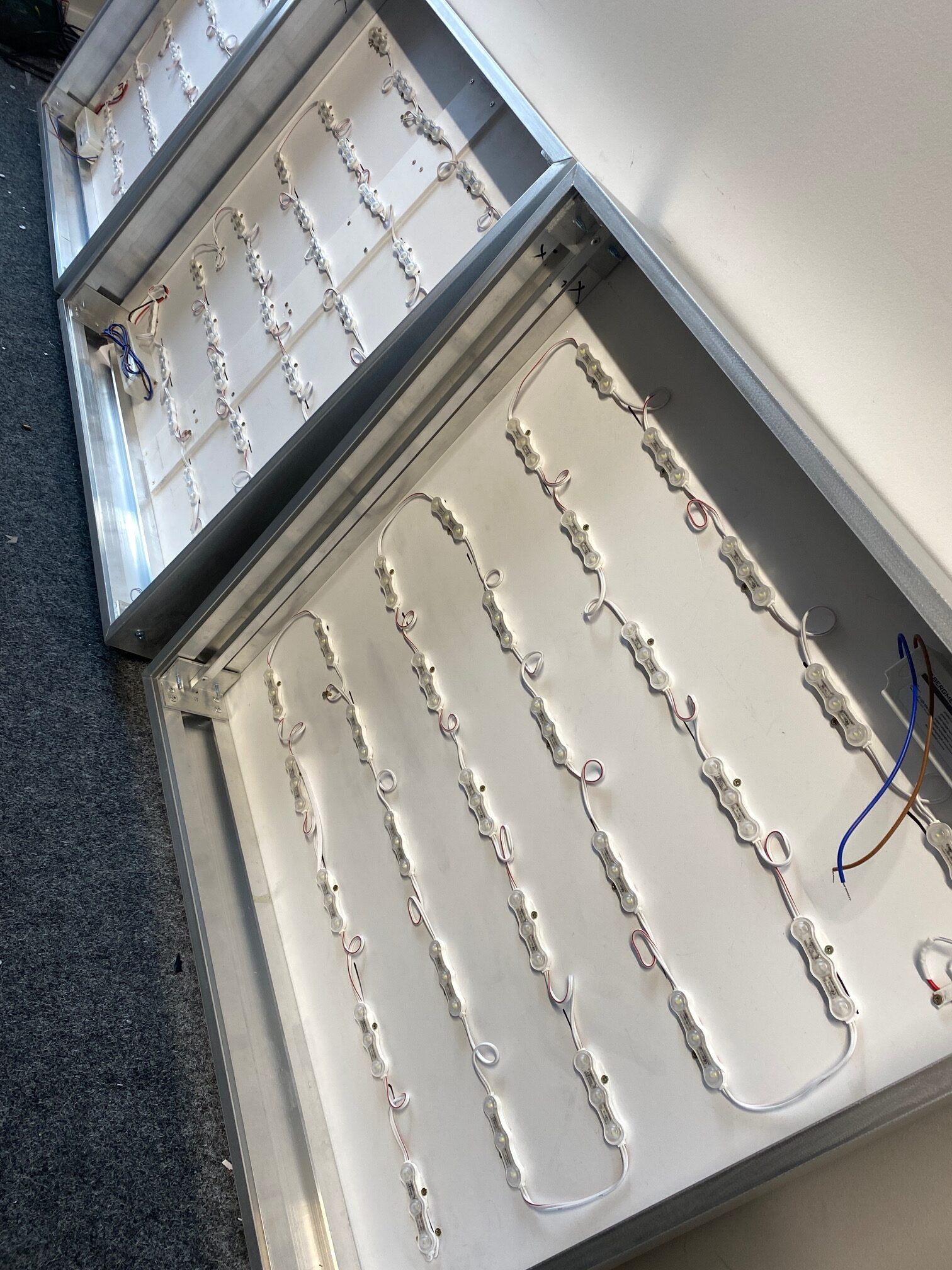 Materiał: kaseton w ramie aluminiowej, kaseton frezowany z dibondu, kaseton z pleksi.